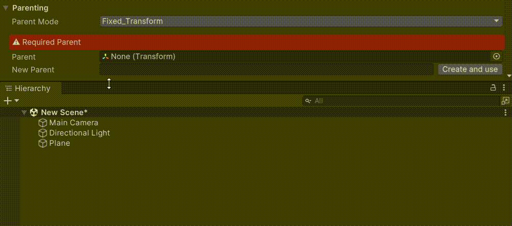 <figure><img src="https://1236114686-files.gitbook.io/~/files/v0/b/gitbook-x-prod.appspot.com/o/spaces%2FStnSJtFVa8qAPtMowHno%2Fuploads%2Ft4TWZn2yxMW4oyjHnrBM%2F20230821_112905.gif?alt=media&#x26;token=633dbcad-030b-4df4-9537-f5e6c72d4ca9" alt=""><figcaption><p>When you hit "Create and Use" a new object on the hierarchy appears</p></figcaption></figure>